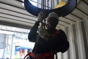 จ. การใช้อุปกรณ์คุ้มครองความปลอดภัยส่วนบุคคลที่ใช้ในที่อับอากาศ